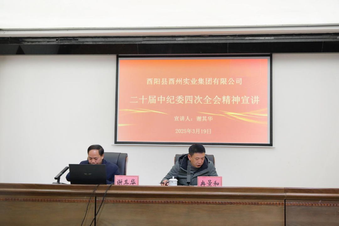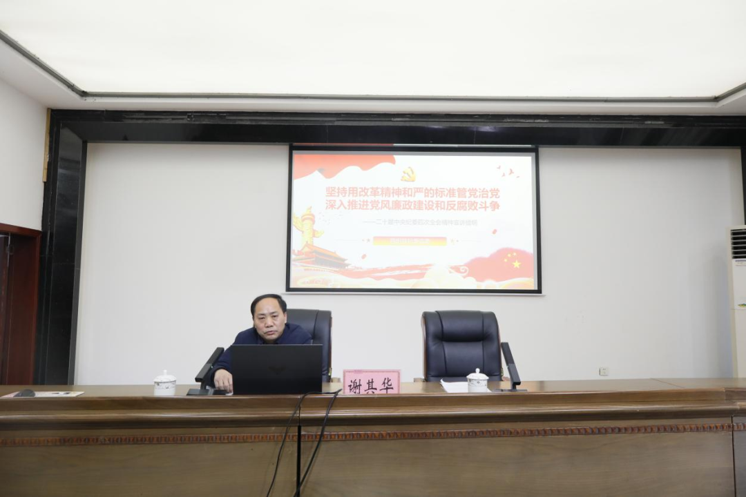 【3月20日訊 楊宜霖】 為深入學(xué)習(xí)宣傳貫徹二十屆中紀(jì)委四次全會(huì)精神,教育引導(dǎo)集團(tuán)全體黨員干部深入理解、全面把握其精神實(shí)質(zhì)和核心要義。3月19日上午,集團(tuán)按照縣紀(jì)委統(tǒng)一部署,舉行二十屆中紀(jì)委四次全會(huì)宣講。縣紀(jì)委派駐財(cái)政局紀(jì)檢監(jiān)察組組長謝其華作專題宣講,集團(tuán)領(lǐng)導(dǎo)班子、中層副職以上干部、全體黨員參加會(huì)議。